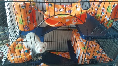 "Efteling Oranje": Cageliner, hoog huisje met grote opening, dubbeldeks hangmatje, rechthoekig hangmatje met franjes. Een smalle tunnel, klein, plat mandje en een knuffelzak met verstevigde ingang. Geschikt voor: meerdere ratten of klein fretje.