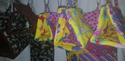 Lusjes aan beide zijden / flappen, waardoor ze ook binnenstebuiten opgehangen kunnen worden (of zelfs als hangmatje).