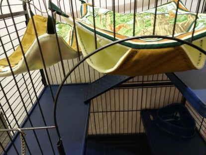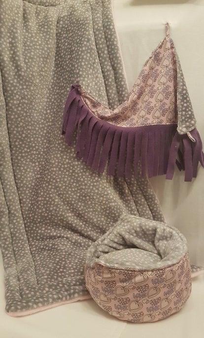 Snel je kooi opvrolijken gaat makkelijk met dit setje, bestaande uit een honeycomb hangmat van ca. 35x35 cm en een enkele rechthoekig hangmat van gemm. ca. 48 cm lang.
